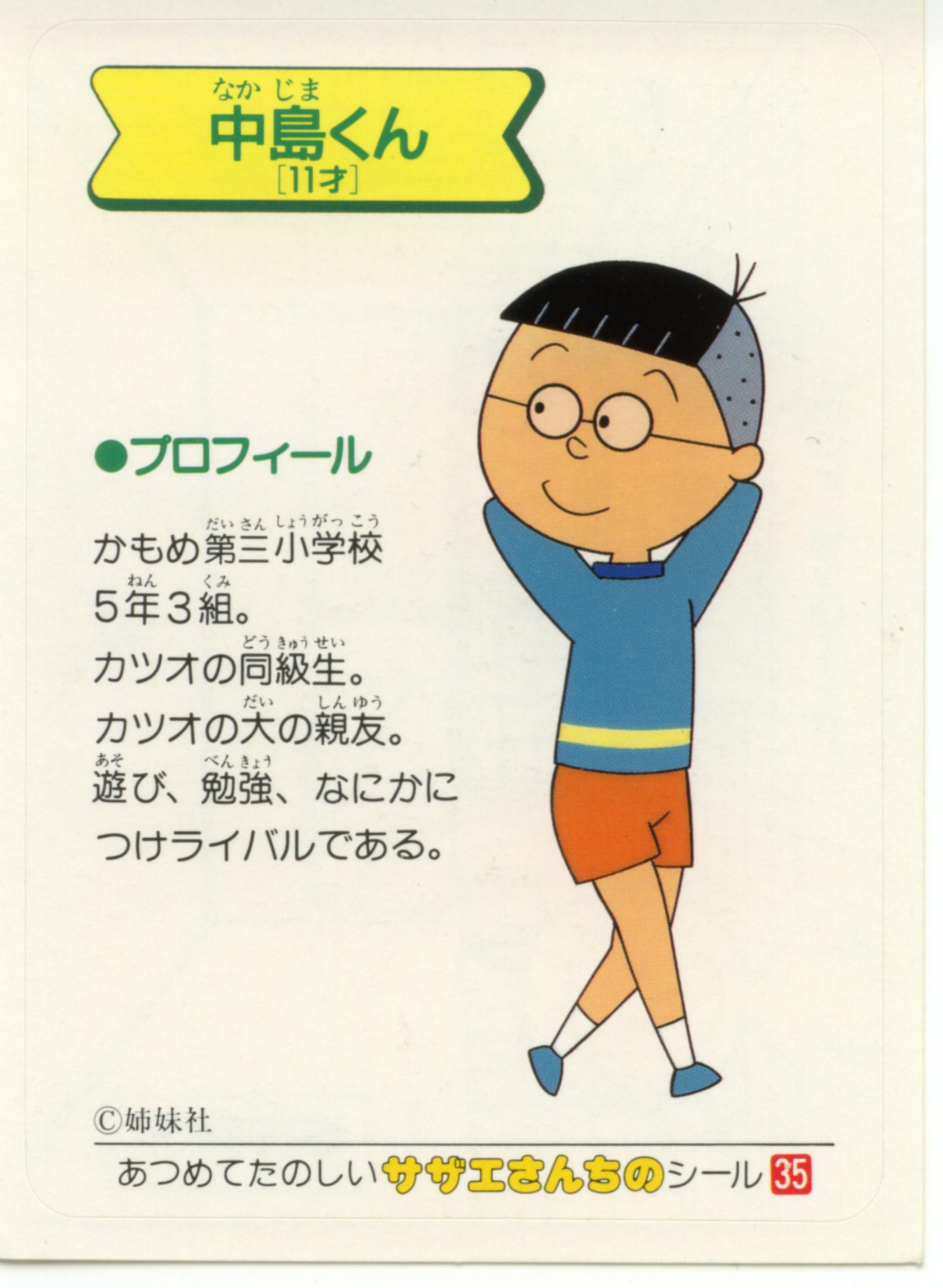 カツオの親友である中島君の家族は、祖父ちゃんとごくたまに兄しか登場しない。
