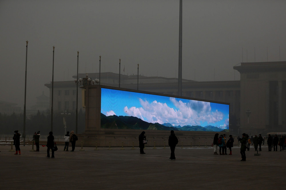 2013年1月23日にはスモッグで淀んだ天安門広場の巨大スクリーンに青空の画像が映し出され話題を集めました。