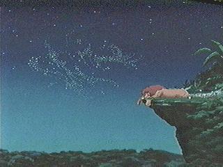 シンバが崖の突端まで歩いて倒れ込んだとき、舞い上がった埃(ほこり)が星空に描いたのは「S・E・X」という卑猥な文字。