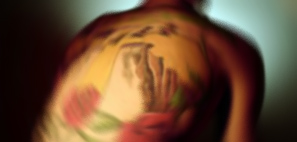 ジャケットを裏返すと何かのシンボルティックな記号やハートの絵柄等がうっすらと見える。これはどう見ても刺青の絵柄である。